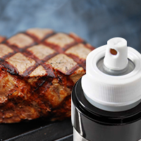 | オイルスプレイヤーを有効活用しよう! ・調理の前に、オイルスプレイヤーでグリッド全体にまんべんなくオリーブオイルなどを 添付してコーティング。きれいなグリルマーク(焼目)をつけることができます! |